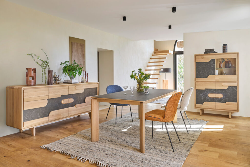 Chaque pièce de cette gamme incarne un équilibre parfait entre matériaux nobles et design audacieux, créant ainsi un intérieur élégant et chaleureux.
