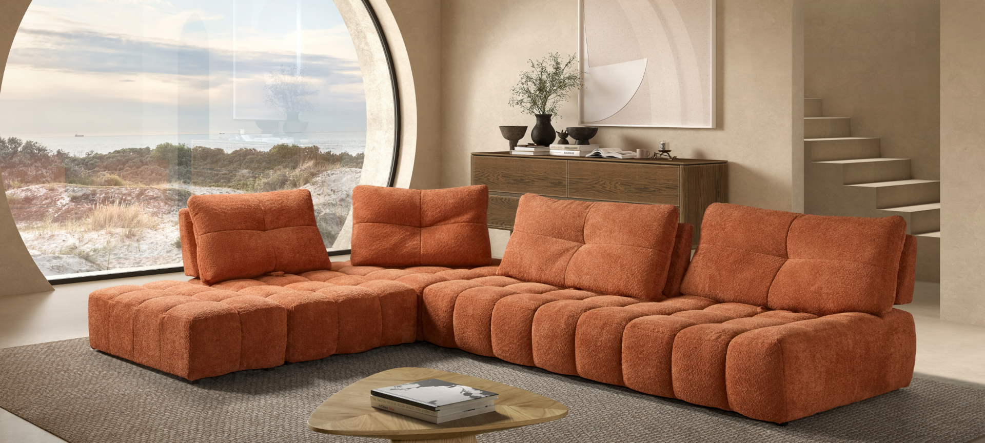 Salon d'angle : L.375 H.95 P.280 cm